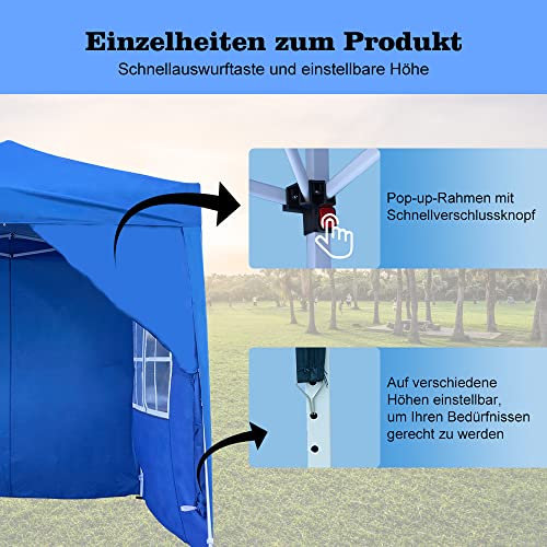 【Blauer Faltpavillon】 Dieser faltbare Pavillon ist mit nur wenigen Handgriffen sehr einfach zu montieren und kann in wenigen Minuten installiert werden, da er über ein praktisches Pop-up-System verfügt.