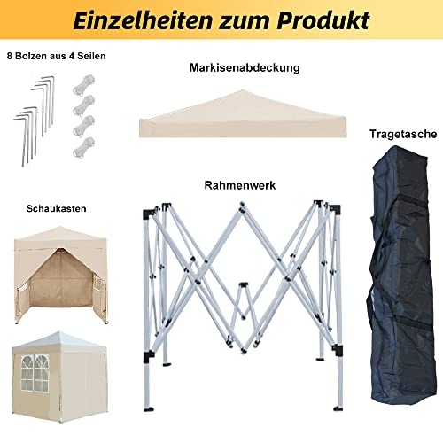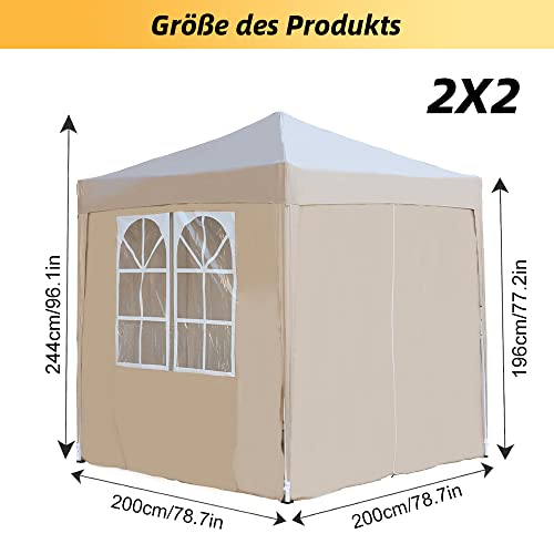 Mingone Faltpavillon Wasserdicht Pavillon 2x2m Stabil Partyzelt Pop Up Gartenzelt Weidezelt PE Bierzelt UV Schutz 50+ Festzelt mit 4 Seitenteilen,Beige