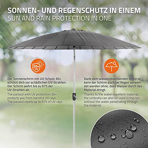 IDEALER SONNENSCHUTZ – Dieser Shanghai-Sonnenschirm von ML-Design schafft Ihnen ein orientalisches Ambiente. Dieser Sonnenschirm bietet dir nicht hingegen ein schattiges Plätzchen auf deinem Balkon oder deiner Terrasse, sondern verleiht deinem Außenbereich alias fernöstliches Flair. Mit seinem großen Schirm schützt er Sie vor praller Sonne und gefährlicher UV-Strahlung. So können Sie das schöne Sommerwetter entspannt genießen.