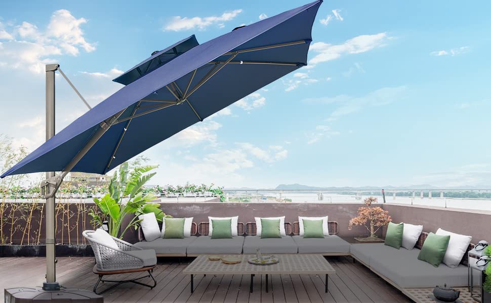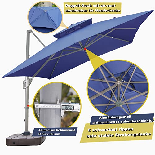 MOJIA Ampelschirm, Maße: 300 x 300 cm, Form: Quadratisch mit Doppeldach-Design, hitzeabschirmend, luftdurchlässig, atmungsaktiv