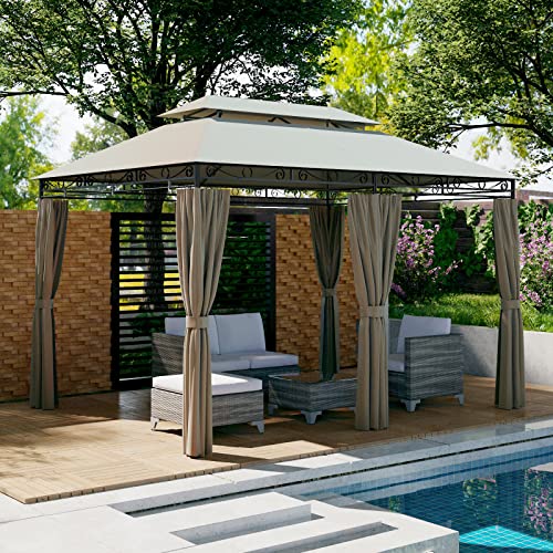 [Offenheit und Privatsphäre] – Dieser Pavillon bietet 3 x 4 m Platz, darum Sie und Ihre Familie und Freunde sich im Inneren nicht eingeengt fühlen. Ausgestattet mit 6 seitlichen Vorhängen mit Reißverschlüssen und Ringe, bietet er bei Bedarf eine lückenlos geschlossene Privatsphäre.