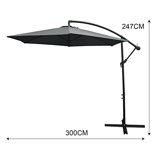 Unser luxuriöser 3-m freitragender Sonnenschirm ist die perfekte Nachtrag zugunsten Ihren Garten, Terrasse oder Pool. Stilvoll, praktisch und dank des hochwertigen 160g Polyester bekannt als UV-jederzeit.
