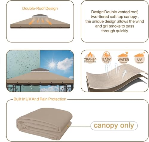 Schöne Zusatzfunktionen: Um an regnerischen Tagen gut abfließen zu können, ist das Baldachin-Ersatzoberteil mit 16 Drainagelöchern auf der Oberseite ausgestattet, die nicht zu Wasseransammlungen im Zelt administrieren; PVC-Beschichtung hat eine gute Beständigkeit gegen hohe Temperaturen, die starkem Sonnenlicht widerstehen und schädliche UVA- und UVB-Strahlen umschiffen kann.