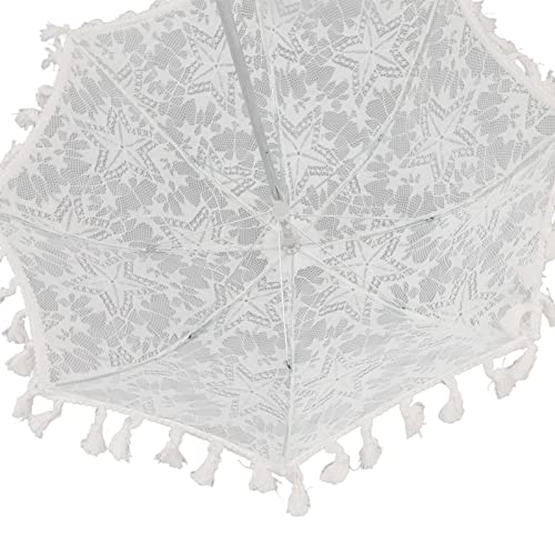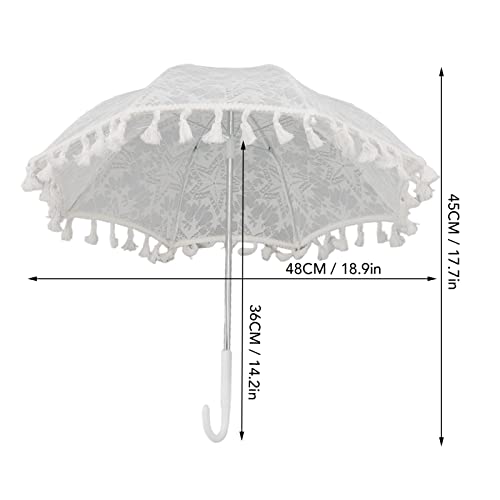 Weiße Spitze: Mit hochwertiger Spitze und weißem Design ist dieser Spitzenhochzeitsschirm retro und einzigartig und symbolisiert Reinheit und Schönheit.
