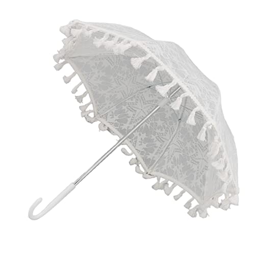 Stahlrippe: Die Pharmazeutikum- und Rippenplatte sind allesamt robustem Stahl gefertigt, was die Festigkeit und Praktikabilität des schönen weißen Spitzenschirms gewährleistet.