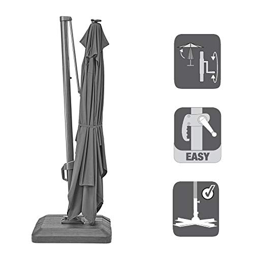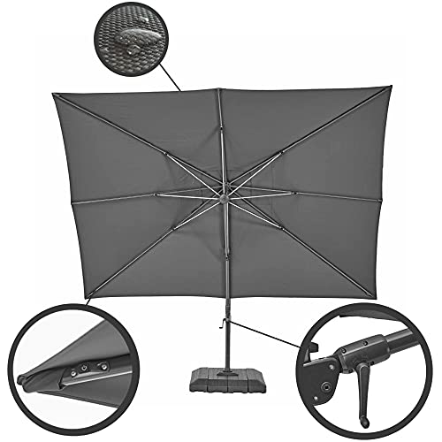 OPTIMALER SCHUTZ: Mit dem 3,91×2,82 m großen Bezug sind Sie zu 100 % vor UV-Strahlen geschützt, wohl bekannt als vor Wasser dank des wasserabweisenden Gewebes. Der Schirm ist um 360° schwenkbar, um 60° neigbar und schützt Sie so immerzu vor der Sonne, gleich zu welcher Tageszeit
