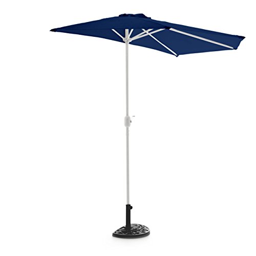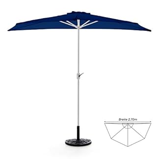 Gartenschirm, dunkelblau, halbrund jeder Polyester: 160g/m². Der Schirm lässt sich unkompliziert mit der Kurbel anfangen. Er hat folgende Maße: Breite: 270cm, Hölle: 140cm, Gesamthöhe: 235cm.