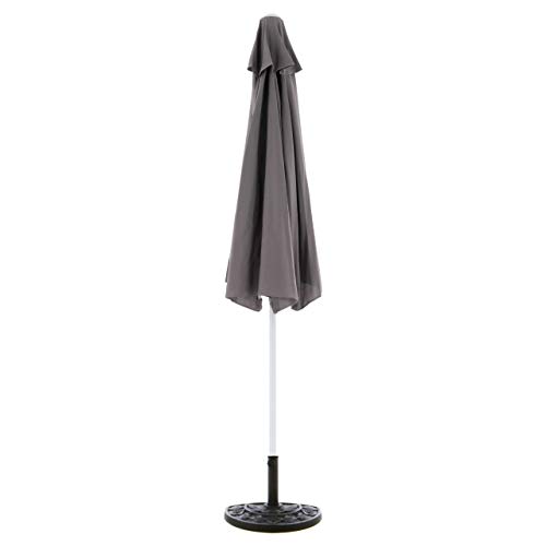 Gartenschirm, anthrazit, halbrund aus Polyester: 160g/m². Der Schirm lässt sich unkompliziert mit der Kurbel öffnen. Er hat folgende Maße: Breite: 265cm, Hölle: 138cm, Gesamthöhe: 230cm.