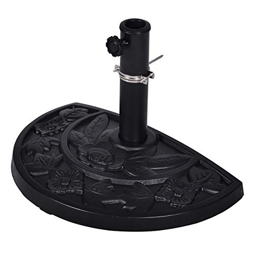 Der halbrunde Schirm-Ständer aus Polyresin in edler Gussoptik kann für zusätzliche Stabilität mit einer Schelle an der Wand befestigt werden. Der Sonnenschirm-Ständer wiegt ca. 9kg und hat einen Ø von ca. 49cm.