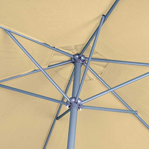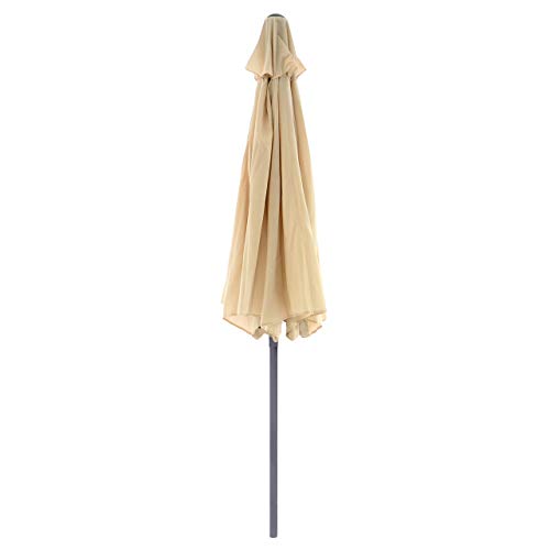 Der creme-farbene / beige Schirm hat einen Durchmesser von fast 3m. Der Stamm ferner die 6 Rippen sind aufgebraucht Stahl. Der Strandschirm ist mithilfe einer Kurbel ausgestattet ferner knickbar.