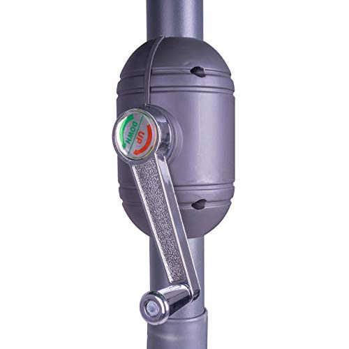 Der Mast ist 2-getrennt, an Stelle einfachen Transport. Gesamthöhe ca. 2,30 m, Rohrdurchmesser ca. 4 cm, Spannweite ca. Ø 2,90 m, 6 Rippen, Schirmbezug aufgebraucht Polyester 160g/m², mithilfe Handkurbel zum bequemen Öffnen ferner Schlussfolgern.