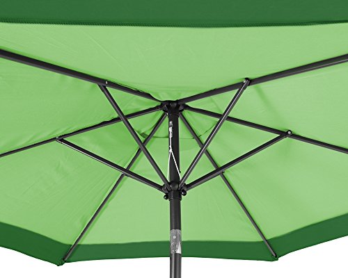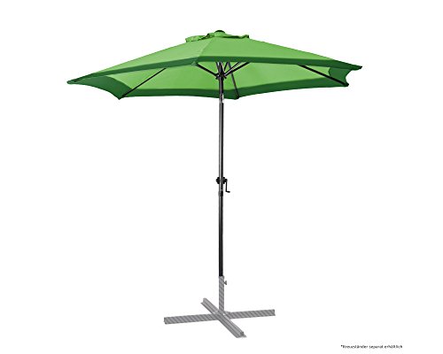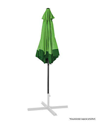 Laden Sie Ihre Freunde zu einem gemütlichen Grillabend zu sich in den Garten ein und beeindrucken Sie sie mit einem einzigartigen Sonnenschirm. Der zweifarbige Marktschirm mit seinem 250 cm Durchmesser spendet ideal Schatten für zwei Sonnenliegen und ist somit gut für Terrassen und Gärten sinnvoll. Bekannt als ein Tisch findet darunter genügend Platz. Genießen Sie Ihren aus persönlichen Ort der Entspannung mit einem kühlen Getränk, einem guten Buch und lassen Sie im kühlen Schatten die Seele baumeln. Das dunkelgraue Gestell aufgebraucht Stahl lässt sich durch eine Kurbel kinderleicht und mit Gewiss ein paar wenigen Bewegungen aufbauen. Der Schirmstock hat einen Durchmesser von 38mm und verbindet 6 Streben miteinander, welche den Sonnenschirm aufspannen. Der Sonnenschirm besteht aufgebraucht 100% Polyester und ist somit wasserabweisend. Der Marktschirm verfügt über einen UV-Abschirmung von 50 und ist mit einem verchromten Knick-Gelenk ausgerüstet. Dieses kann durch einen Druckknopf individuell eingestellt werden, sodass man Bekannt als bei schrägem Sonneneinfall und zu aus Stunde am Tag vor den Sonnenstrahlen geschützt ist. Um den Sonnenschirm vor dem Umfallen bei leichten Windstößen zu schützen, ist ein air-vent eingebaut. Dieser lässt Windstöße entweichen und bewahrt den Schirm vor Schäden.Zusätzlich kann ein Kreuzständer erworben werden, um ein Umkippen des Schirmes zu unterbinden.. Es ist empfehlenswert, den Ständer mittels der vorgefertigten Bohrungen zu befestigen. Der Marktschirm weist Gewiss ein Gewicht von 4,3 kg auf und kann somit ohne große Bemühungen transportiert und umgestellt werden. Zusammengeklappt ist er stark schmal und gut zu verstauen.