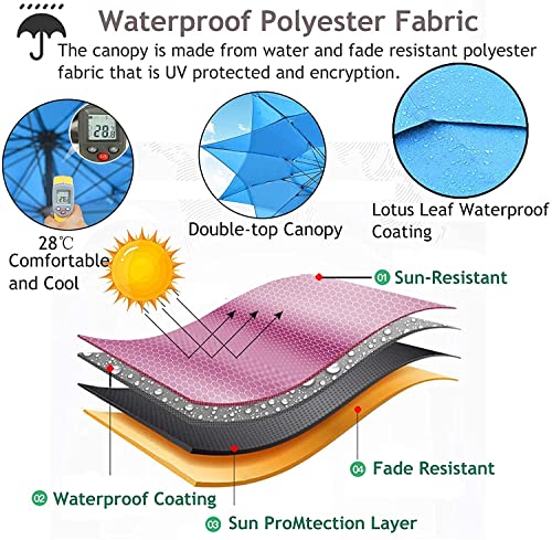Langlebig: Doppelschichtiger verstärkter Schirmknochen und 10 robuste Rippenstützstangen geben dem Schirm mehr Stabilität und halten eine lange Lebensdauer.