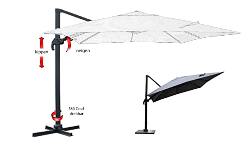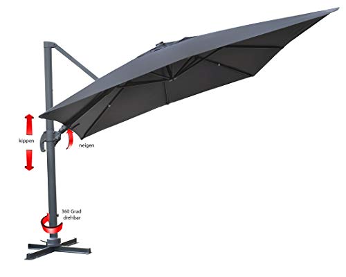 osoltus ALU Ampelschirm Sonnenschirm Big Roma Plus Tilt 3x3m Anthrazit incl. Schutzhaube