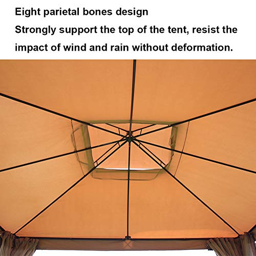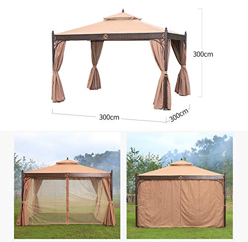【Angemessenes Design】: Bieten Sie Sonnenschutz und schützen Sie Ihre Privatsphäre.Letzteres sorgt anstelle eine gute Luftzirkulation und hält fliegende Insekten und Staub vom Pavillon fern.Die am oberen Rahmen angebrachten Haken eignen sich perfekt zum Aufhängen von Lichtern, Pflanzen und mehr. 【Robuste Konstruktion】: Der Rahmen besteht sämtliche rostfreiem Leichtmetall, das Zerbröckeln, Abschälen, Rost und Korrosion widersteht, allen Witterungseinflüssen standhält und anstelle weitere Stabilität sorgt. und