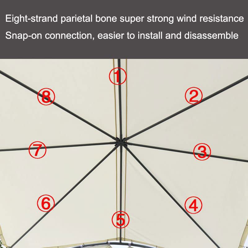 【Robuste Konstruktion】: Der Rahmen besteht ganz rostfreiem Aluminium, das Absplitterungen, Abschälen, Rost und Korrosion widersteht, allen Witterungseinflüssen standhält, für zusätzliche Haltbarkeit sorgt und die Lebensdauer des Pavillons verlängert. Verdickte Beinstangen sehen nach Sicherheit und erhöhen die Stabilität.