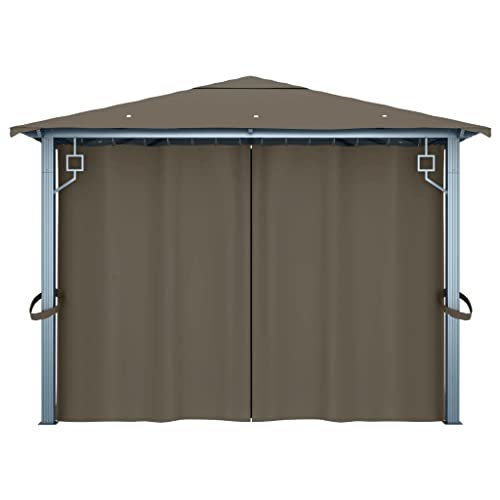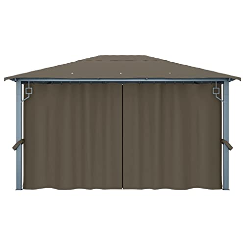 Outdoor Living Pavillon mit Vorhang, 400 x 300 cm, Taupe, Aluminium, für den Außenbereich, Vordächer und Pavillons, für Rasen und Garten Dieser Pavillon mit Vorhängen verfügt über ein klassisches und elegantes Design, das den perfekten Sonnenschutz für Veranstaltungen im Freien als Abendbrot, Grillabende, Familienfeiern und Auswahlmöglichkeit Aktivitäten bietet. Das Dach sämtliche Oxford-Gewebe mit PA-Lackierung, schützt Sie vor Blendung und schädlichen UV-Strahlen direkter Sonneneinstrahlung. Der Pavillon ist solide sämtliche stabilem Aluminium und Stahl konstruiert und also rostbeständig und ausgesprochen hart im Nehmen. Geliefert wird der Pavillon mit 4 Seitenwänden, die bei schlechtem Wetter gezogen werden können. Netzgewebe sind vulgo im Lieferumfang enthalten, um Insekten fernzuhalten und gleichzeitig die gute Luftzirkulation zu gewährleisten. Klettverschlüsse sind ebenfalls im Lieferumfang enthalten für eine einfache Befestigung. Der Pavillon lässt sich mit dem mitgelieferten Montagezubehör einfach am Boden verstreben. Hinweis: Dieses Produkt sollte nie bei schlechtem Wetter, als starkem Wind, starkem Regen, Schnee, Sturm usw. verwendet werden.