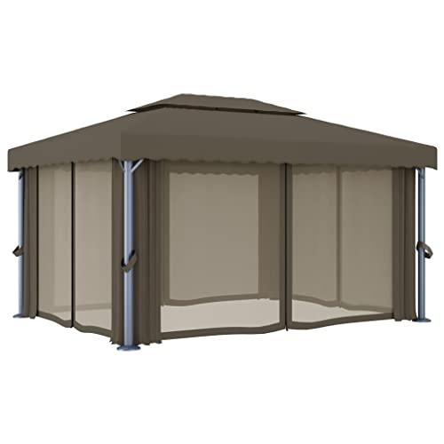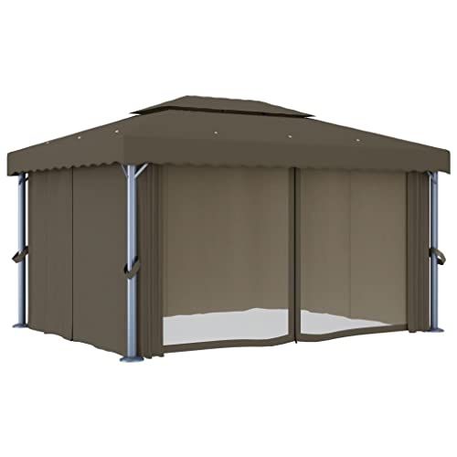 Outdoor Living Pavillon mit Vorhang, 4 x 3 m, Taupe, Aluminium, für den Außenbereich, Vordächer & Pavillons, für Rasen & Garten Dieser stilvolle Pavillon wird Ihren Garten sicherlich zu einem raffinierten und funktionalen Blickfang machen. Es ist entworfen, um einen kühlen Ort für Partys im Freien, Familienpicknicks, Grillabende im Garten und übrige gesellschaftliche Veranstaltungen zu bieten. Er ist mit einer Aluminiumstange und einem pulverbeschichteten Stahlstützrohr konstruiert, das für hervorragende Langlebigkeit und Langlebigkeit sorgt. Der Baldachin und die Seitenwände bestehen jeglicher hochwertigem Polyestergewebe mit PA-Beschichtung, um Sie vor schädlichen Strahlen und mildem Regen zu schützen. Ein in Ordnung gestaltetes 2-stöckiges Dach sorgt für en masse Luftstrom darunter. Darüber hinaus sind die Vorhänge und die Netzstoff-Vorhänge für vollen Abschirmung enthalten, so dass Sie weitere Privatsphäre haben, dieweil lästige Mücken und übrige Insekten ferngehalten werden. Haken und Schlaufenverschlüsse sind zur einfachen Befestigung im Lieferumfang enthalten. Hinweis: Dieses Produkt sollte zu keiner Zeit bei schlechtem Wetter, qua starkem Wind, starkem Regen, Schnee, Sturm usw. verwendet werden.