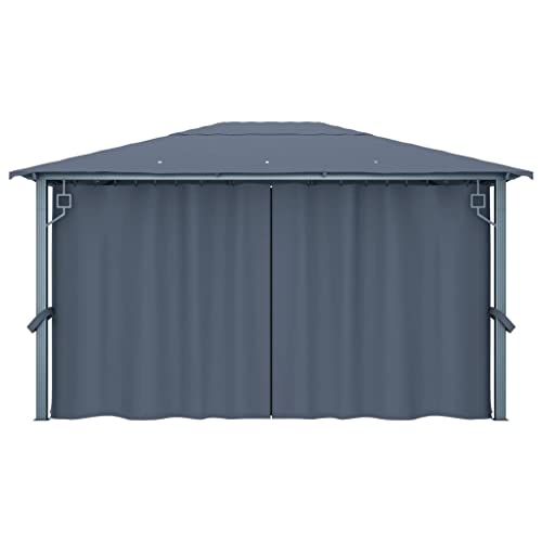 Outdoor Living Pavillon mit Vorhang & LED Lichterkette 4x3m Aluminium Außenstrukturen Überdachungen & Pavillon
