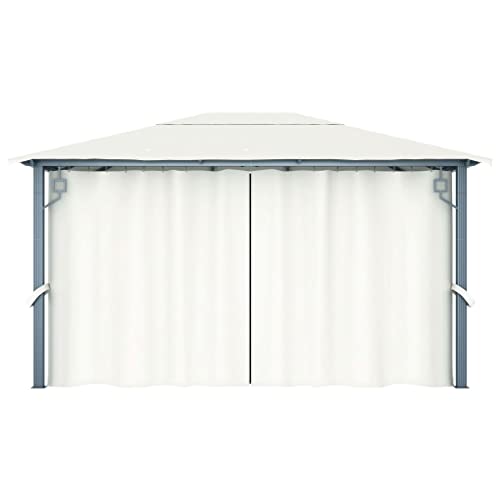 Outdoor Living Pavillon mit Vorhang & LED Lichterkette 4x3m Creme Aluminium Outdoor Strukturen Vordächer & Pavillon