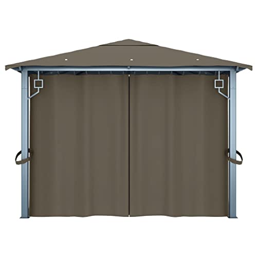 Outdoor Living Pavillon mit Vorhang & LED Lichterkette 4x3m taupe Aluminium Outdoor Strukturen Vordächer & Pavillon