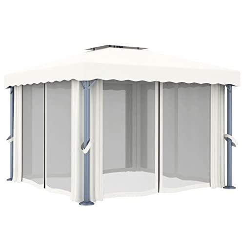 Outdoor Living Garten- und Rasenpavillon mit Vorhang, 3 x 3 m, cremeweiß, Aluminium