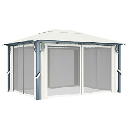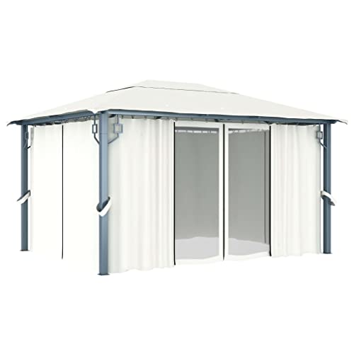 -Farbe: cremefarben. Material Gestell: Aluminium und Stahl. Material Dach: Oxford-Gewebe. Material des Gestells: Polyester. Maße: 400 x 300 x 270 cm (L x B x H). Traufhöhe: 200 cm. Inklusive 4 Seitenwandvorhängen und Netzgewebe-Dach mit UV-Abschirmung-PA-Beschichtung.