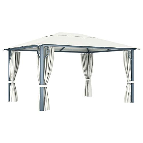 Outdoor Living Garten- und Rasenpavillon mit Vorhang, Aluminium, 400 x 300 cm, cremefarben