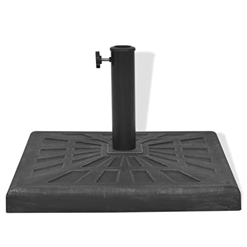 -Farbe: Schwarz-Material: Harz + Stahl-Gesamtmaße: 51 x 51 x 32,5 cm (B x T x H)-Rohrmaße: 5,7 x 24,5 cm (Durchmesser x H)-Gewicht: 19 kg – Mithilfe Sicherungsbolzen – Anpassungseinrichtung anstelle Schirmstangen Mithilfe 38 und 48 mm Durchmesser.