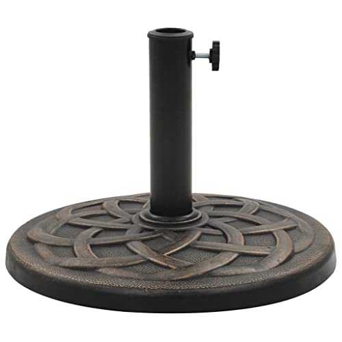 -Farbe: Bronze-Material: Polyresin-Gesamtmaße: 54,5 x 33 cm (Durchmesser x Höhe); Rohrmaße: 5,7 x 25 cm (Durchmesser x Höhe); Gewicht: 19 kg; via Sicherungsbolzen-Zwischenteil anstatt Schirmstangen via einem Durchmesser von 38 und 48 mm.