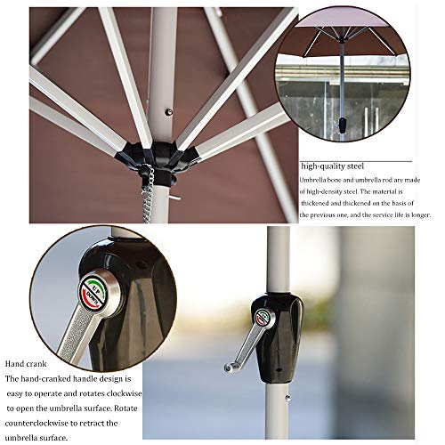Der hochwertige Regenschirmrahmen kann den Windwiderstand umwandeln, sodass Sie sich keine Sorgen machen müssen, dass der Regenschirm bei Wind zusammenbricht. Wenn Sie den Griff halten, ist der kommerzielle Außenschirm auf der Terrasse einfach zu installieren und zu öffnen.