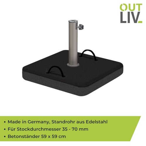 OUTLIV. Quadratischer Betonschirmständer 60kg, für Stockdurchmesser 35-70 mm, vormontiert, Schirmständer für Balkon und Terrasse, 59×59 cm, Anthrazit