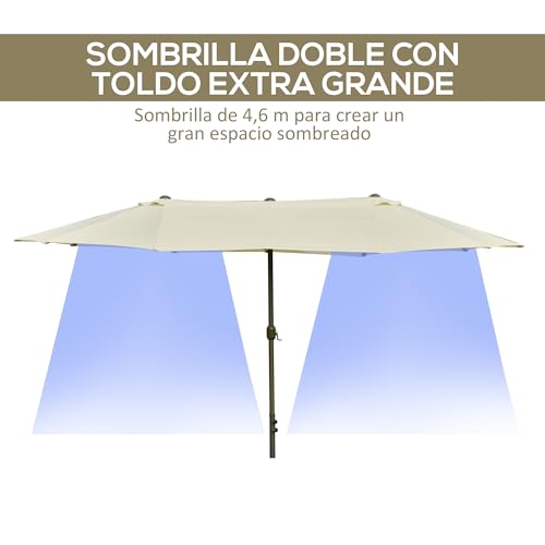Brauchen Sie einen großen Sonnenschirm oder Sonnenschirm? Dieser Kopie-Sonnenschirm von Outsunny ist ideal, daher Sie Outdoor-Aktivitäten mit Ihrer Familie oder Freunden genießen und vor der Sonne geschützt sind. In Ihrem Garten, auf der Terrasse oder im Poolbereich platziert, erhalten Sie dank seiner Länge von 4,55 m in Sekunden einen großen schattigen Stückchen. Mit pulverbeschichtetem Stahlrahmen und Polyestergewebe, wetterfest, wasser- und sonnenbeständig.