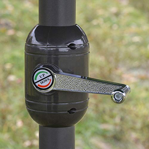 Öffnen und Induzieren mit Handgriff: Der Gartenschirm ist überaus einfach zu bedienen dank des Mechanismus zum Öffnen und Induzieren durch manuelle Kurbel. Die Kurbel befindet sich am gleichen Mast, so dass sie überaus einfach zu bedienen und nach Ihren Bedürfnissen reguliert werden kann