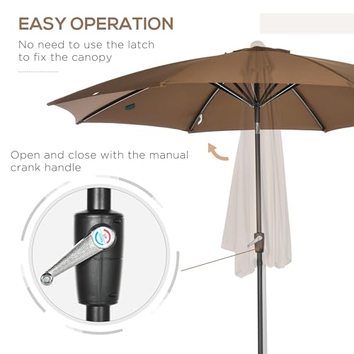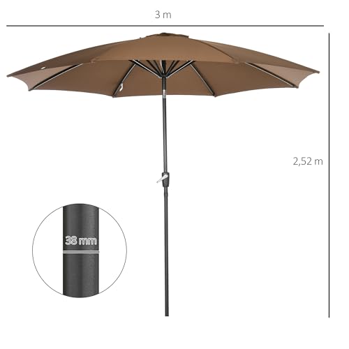 Outsunny Garten-Sonnenschirm Ø300×252 cm Terrassen-Sonnenschirm mit Griff Kippdach und 8 Metallstangen für Terrasse Balkon Outdoor Braun