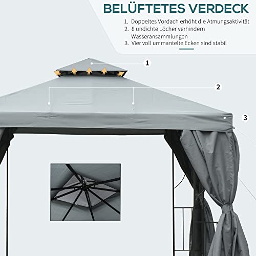 Praktischer Pavillon: 2,95 x 2,95 m Pavillon mit Seitenwänden für Komfort und effektiven Abschirmung, ideal für Terrasse, Hinterhof, Garten oder andere Außenbereiche