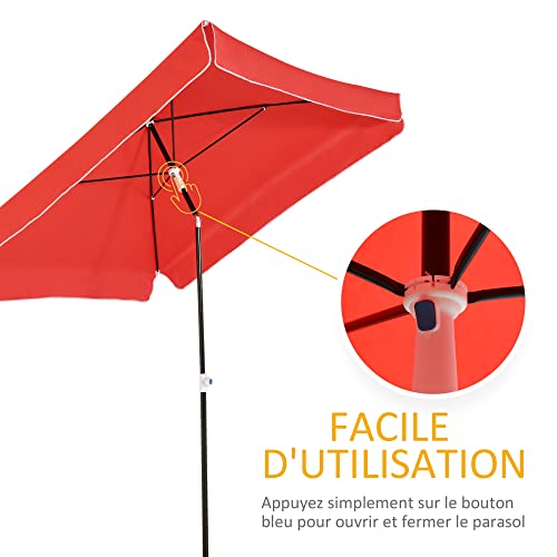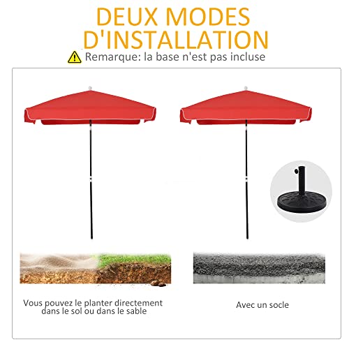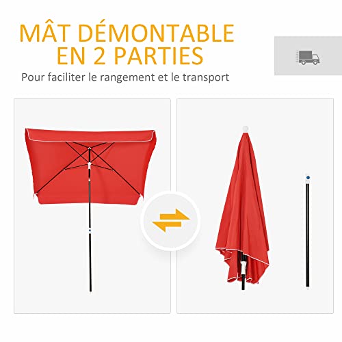 Outsunny Gartenschirm Gerader Sonnenschirm Neigbarer Sonnenschirm rechteckig Metall Polyester hochdichte 2L x 2l x 2,6H m rot