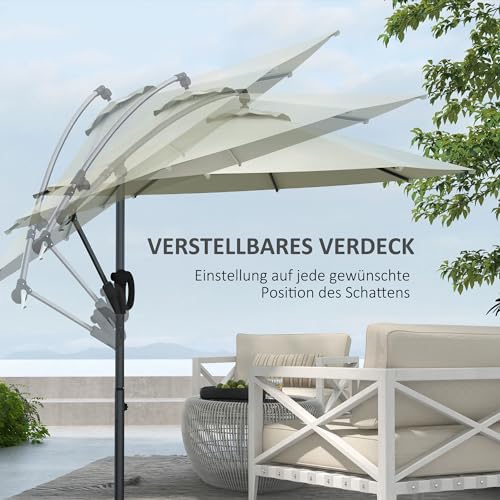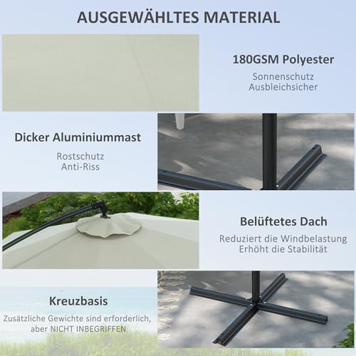 Outsunny Ø293 cm Ampelschirm mit Kreuzfuß, Sonnenschirm mit Kurbel, Neigung und 8 Rippen, hängender Terrassenschirm für Außenpool, Garten, Balkon