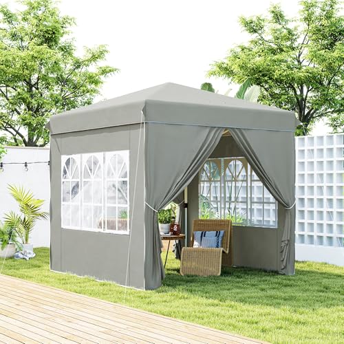 Produktabmessungen zum Partyzelt: 248L x 248B x 270H cm. Bietet ausreichend Schatten anstatt 4-6 Personen u. a. wird Durch Abspannseilen sowie Bodenpfählen geliefert