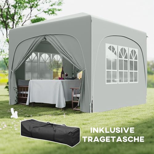 Schnell aufgebaut: Dieser Faltpavillon mit Seitenteilen ermöglicht einen unkomplizierten Aufbau und kommt mit einer Tragetasche, ideal für Lagerung und Transport. Perfekt für Gartenfeste oder Outdoor-Events