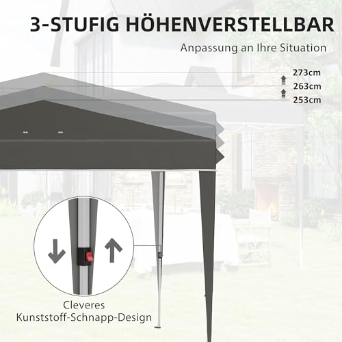 Höhenverstellbar: Dieser Marktstand-Pavillon verfügt über dreifach verstellbare Metallbeine, die eine einfache Anpassung der Höhe (273/263/253 cm) ermöglichen und sich somit ideal für verschiedene Outdoor-Events eignen