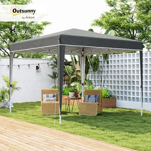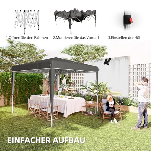 Outsunny Pavillon 3x3m, wasserabweisend Stabil Winterfest Pop-up Faltpavillon, UV Schutz 50+, Faltbar Partyzelt Gartenzelt mit Tasche, Gartenpavillon für Camping Garten, Dunkelgrau