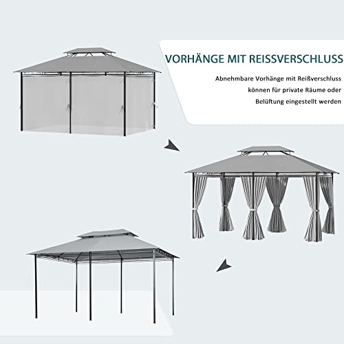 Outsunny Pavillon 3x4m Gartenpavillon mit 6 Seitenteilen Partyzelt Gartenzelt Festzelt mit Doppeldach Dunkelgrau