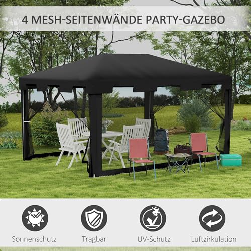 Outsunny Pavillon 4x3m Sechseckig Wasserabweisend Stabil Winterfest Pavillon mit Moskitonetz 4 Seitenteilen Partyzelt Gartenzelt Gartenpavillon Festzelt für Camping Garten, Dunkelgrau