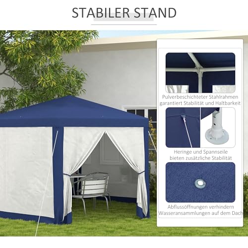Outsunny Pavillon 4x3m Sechseckig Wasserabweisend Stabil Winterfest Pavillon mit Moskitonetz Partyzelt Gartenzelt mit 6 Seitenteilen Gartenpavillon für Camping Garten, Blau