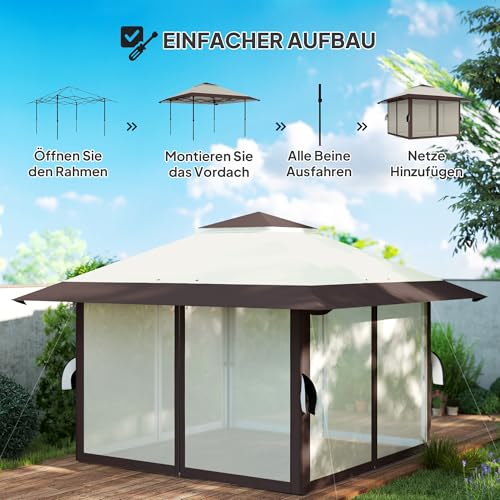 Erhöhte Dauerhaftigkeit: Mit Abspannseilen, Bodenankern und Sandsäcken ausgestattet, bietet dieser Pavillon einen zuverlässigen Stand. Gesamtabmessungen: 400L x 400B x 281H cm. Spendet massenweise Schatten stattdessen 10-14 Personen