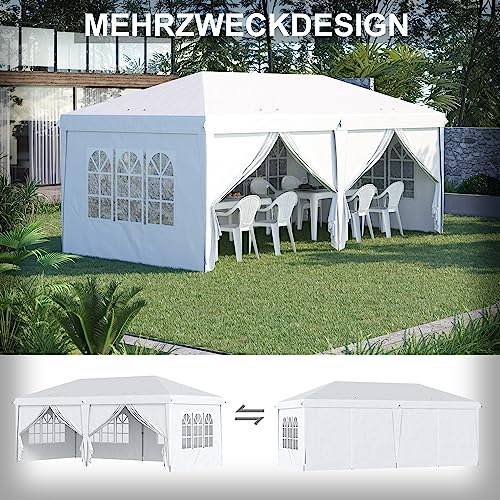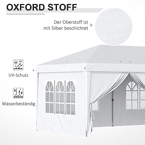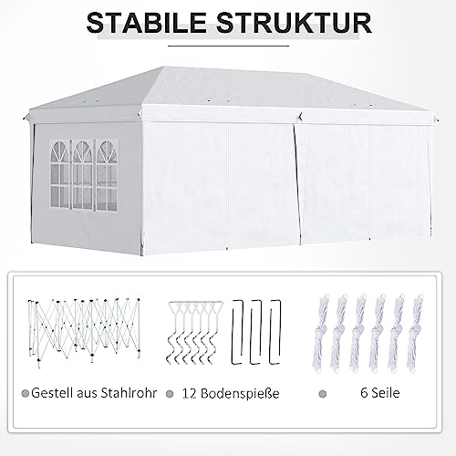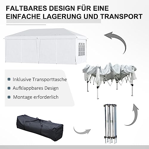 Outsunny Pavillon 5,85 x 2,95 m Gartenpavillon, Faltpavillon mit UV-Schutz, Partyzelt, Bierzelt mit Seitenwände, Fenster, Reißverschlusstüren, für Balkon, Stahl, Weiß