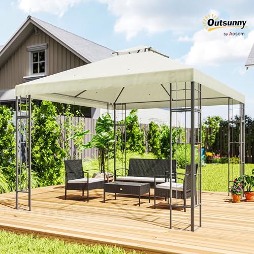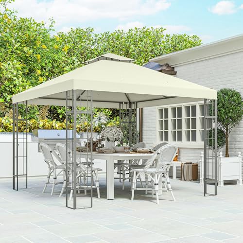 Outsunny Pavillon mit Doppeldach, ca. 3×3 m Wasserabweisend Stabil Winterfest Gartenpavillon mit UV-Schutz Partyzelt aus Metall, für Garten, Terrasse, Cremeweiß