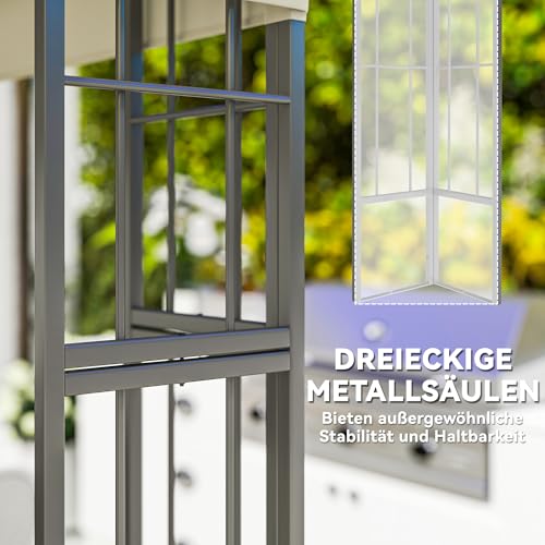 Robuste Metallstruktur: Dieses Gartenpavillon mit vier dreieckigen, pulverbeschichteten Säulen gewährleistet außergewöhnliche Dauerhaftigkeit und Alterungsbeständigkeit