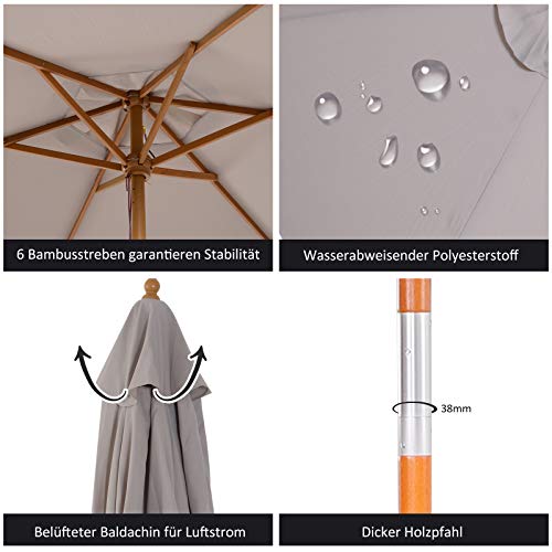 EINFACHE NUTZUNG: Robuster Ständer ganz Bambus, per sechs Holzrippen unter anderem einer unverwöhnt zu bedienenden Zugleine zum Öffnen unter anderem Derivieren